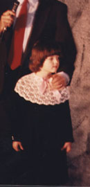 Most charming act awards: (1) Runaway favorites here are Ian and Hillary, the 7 and 5-year-old children of Brian Flora. Really cute kids. Ian did a memory routine, beginning with a list of 10 items called out from the audience. Some ne'er-do-well called out "multiplexer," and the kid absolutely leveled him by turning to him sweetly and saying, "I can't remember it if I don't know what it is." Ian followed by doing the magazine memory stunt with a copy of the Teenage Mutant Ninja Turtle Magazine. Just terrific stage presence, and I'm sure this stunt sold lots of copies of the magazine test for his dad and mom. Hillary, who at five has already appeared on Japanese TV, did the physical stunt of making herself so heavy that no one could lift her. Also terrific stage presence. (2) Jan Orleans. Jan took the stage as Danny selected random spectators to bring up random objects. She was great at this. Danny had previously announced that Jan had placed 4th this year out of 3000 women in a national aerobics contest. In a strapless dress, she gave us a taste of this by flexing for us. She could have been a hit this night even without the mentalism. (3) Cheri Soleil. I'm a big fan of Cheri's, and she did great this year, especially with a spirit slate stunt. She was selling the new T.A. Waters video at the dealers' bazaar.