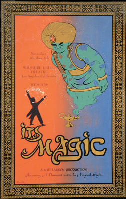 Milt: Well, it really was kind of like that. I was the secretary for the local S.A.M., Assembly 22. I was just barely out of high school. The secretary at that time didn't mean a legal secretary doing the minutes and all that sort of thing. It was who got stuck doing the newsletter. I was an aspiring comedy writer at the time and wrote a pretty funny little newsletter, and therefore I became secretary. So at any rate I was kind of involved with the S.A.M. at that point. When I was a kid growing up, the P.C.A.M. put on annual shows at the Wilshire Ebell Theatre. Quite often there would be magic stage shows, and they would usually have celebrities of the time, like Chester Morris and Edgar Bergen, Harry and Frances Usher, all those great people from the late thirties and forties. But after World War II all that kind of dried up, and they just stopped doing them for whatever reason. The S.A.M. was doing an annual show to raise funds, but they ended up doing it at a place called Plummer Park, which was a nice little 300-400 seat auditorium in a city park. But it was really kind of a flat floor dreadful stage, with no lights and no curtains. I had remembered these wonderful shows with an orchestra in a pit, and lights and scenery and personalities, and I kept saying, "Why don't we do that?" And they kept saying we can't do that, because that costs a lot of money. And nobody had a lot of money. So that's what brought out ... The first show we did was called Hocus Pocus '56. Which was a dreadful title but it was all I could think of at barely out of my teens. Let's see, in '56 I would have been 25, I guess. A little quick math there. I was born in '31. Anyway, I really sold them on the idea. I said, if the S.A.M. will provide the acts, and they get everybody to perform for whatever, for nothing, then I think we could rent a theater and produce a show. I had a pal at that point by the name of Ollie Berliner who actually did the first nine shows with me. Ollie came from a rather wealthy family. His grandfather invented the phonograph, the flat phonograph record as opposed to Edison's cylinder version. The flat one outlived the cylinders by a long way. So anyway, I went to Ollie and said, look, if you could underwrite this thing, we could rent a theater. And it was like Mickey and Judy: We found a barn and put on a show. And of course I had no idea what I was doing. So we rented the Carthay Circle Theater, which was a great, beautiful premiere house. It's where they premiered films like Gone With the Wind. It was a gorgeous theater, but at that time it was about to be torn down, so we were able to get a very good rate on it. We went to a couple of friends and got our orchestra, Ray Henderson and his Orchestra, and basically the S.A.M. put on the show. Now that first show, Hocus Pocus '56, was really my mother, Gerri Larsen the Magic Lady, and a group of good friends. I forget who exactly was on it, but it's on our list there — Frank Herman, and I think Chop Chop and Charlene, some wonderful people. And we put on a great show for that very first show, with a full orchestra in the pit, and we scrounged enough scenery to make it look good, and the act was top drawer. The theater held about 1200 people, and we put about 600 people in it. Making a long story short, we broke about even on the show, as far as the producers, Ollie and I. The S.A.M., I think what we did with the S.A.M. was they said they made about $500 for their treasury by doing the show, so Ollie and I said we'll give you a minimum of $500 and you give us the show, and anything beyond that we'll split or whatever. As it worked out, we didn't make any money, but we did give them their $500. So the next year we decided to move into the Wilshire Ebell, because that was a theater that shows played in all the time, magic shows, and it had a good reputation. That was a 1200-seat house. And we went to the S.A.M. again and said, "Would you like to play again?" They said, "That was a great show, yes we would." And we said, "This time we won't guarantee the $500, but we have a better chance of doing it." Well on that show we just about broke even too. So the S.A.M. said, "This is a great idea you've got, but we really need that $500." So the next year Ollie and I went out on our own and started doing the shows strictly as an independent production. About that time we started getting a little better known for doing them, and it started turning around. But that's really how it all started. It began as an S.A.M. 22 show and ended up being our own little thing. |
