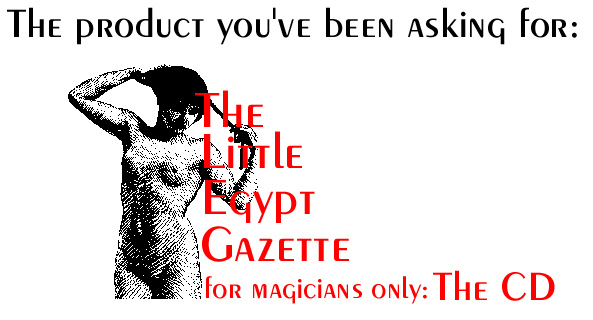 At last! Finally available on CDROM, both volumes of The Little Egypt Gazette, and more: The first US monthly internet magic magazine --