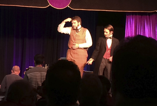 TURNING EIGHTY-THREE -- Perhaps it was the draw of the wonderful Juan Tamariz heading a stellar lineup, perhaps it was simply that the boys at Vanishing, Inc. have established themselves as one of the most trusted brands in magic. Whatever, Magi-fest 2014 quickly sold out its 900 slots to an esteemed roster the likes of which only show up at such venues as the L.A. History Conference, MAGIC Live, or the Genii bash. What fun to see in one place such personal favorites as Stephen Minch, Curtis Kam, Chad Long, Ricky Smith, Tony Chang, Caleb Wiles, Richard Hatch, Charlie Randall, John Bannon, Simon and Ginny Aronson, David Solomon, Gordon Meyer, David Linsell, John Lovick, Mike Close, Barrie Richardson, Kent Gunn, Bill Herz, and many others, and this is just the audience. (And I'm not even counting such Magi-fest regulars as Tom Craven, Tom Gagnon, Andrew Martin, Gene Anderson, many Chicago and Indiana friends, and the excellent dealers.) ![]() Gabe Fajuri's booth had the coolest stuff. Rather than attempt a moment by moment account of the three days and long nights, I'll just highlight a very few. Tony Miller gave me a personal tour of his new Speed Loader Plus wallet. This is something new in wallet designs and is indeed fast. Plus ... Tony and Rosie brighten any convention. Eric Mead lectured on his friend Tim Conover, showcasing several of Tim's featured effects. Later in his own lecture, Tamariz referred back to something he learned from Eric's lecture. Ah, symbiosis. One funny moment: Eric mentioned something that Conover had not liked in Minch's Tommy Wonder books. A voice spoke up from the back of the room to address the issue: that of Stephen Minch. ![]() Tony demonstrates sleight of mouth. ![]() Chad and Tony collaborate on a coin trick. Michael Weber's lecture was brilliant, and I especially liked his vanishing rubber band, ring on wand with no duplicate ring, and a stacked deck routine with an original (and dead easy) stack and an amazing use for it. Wish I had attended the extra pay event! David Carsaro thrilled me with a way easy method to personalize a Fred deck. Of everything I saw in Columbus, I am most likely to use this. Danny Orleans filled the front of the hall with kids and entertained them with his kid show. The loud audience interaction made us all want to do kid shows just like Danny. A funny exchange -- Danny: How old are you? Little Girl: Five and one-half. Danny: Do you know what happens to little girls after they turn five and one-half? Little Girl: Yes. Danny: What? Little Girl: Six! ![]() Danny rocks the kids. Full evening stage shows were featured this year and none finer than Rob Zabrecky's. Rob is a very spooky dude, and I have been a fan since way back when he posted his first magic web site. Rob also presented his famous Alphabet lecture, all 26 letters! The guy is spooky and organized. ![]() Rob Zabrecky, filmed at the Genii bash. Morgan & West from the United Kingdom bill themselves as magicians and time travelers, and they appear to be, dressed and performing as steampunk-era explorers. Although they are very funny, they are also amazing. I particularly enjoyed a white line card transposition that is what Penn and Teller seem to be shooting for (pun accidental) with their Bullet Catching trick, but I like Morgan and West's better. Their rapid-fire chatter, almost stepping on each other's lines, was a masterpiece of timing and writing. ![]() Morgan and West await the audience to be seated. I sat at one of the lobby tables one afternoon and found myself watching Chris Hannibal who just calls himself Hannibal and who has a sort of Jack Black thing going. From the very first phase of what I later learned was his Pringles act, I knew I was watching something special. Very funny stuff and fooled me repeatedly. (You can learn to do the act yourself from Hannibal's DVD set, Hannibal/The Truth from a Liar.) ![]() Hannibal conquers. I always thought that if Matthew McConaughey were to take up magic, he might come across as sort of like Chris Korn. Chris both lectured and performed in close-up, my favorite item being his Voodoo which has roots in Paul Harris and Steranko. Chris Pilsworth was a new name to me, and I enjoyed both his lecture and his close-up (?) set which ended with a large cactus penetrating a balloon, all with each inside a cardboard box. Rune Klan became a favorite soon after he teamed up with Vanishing, Inc. (his book is a must!), and it was great to see both some of his classics (like his Vanishing Pizza) and new stuff such as his comedic takeoff on the Hoy Tossed Out Deck, but mainly I just enjoyed watching his rant about thimble magic. Rune should leave Denmark for a spell and just become insanely rich over here doing standup comedy. ![]() Rune entertains Curtis. Curtis Kam not only came all the way from Hawaii, but he came and conquered, happily performing, teaching, and collaborating throughout the weekend. The coin material was expectedly top notch, as was his card material, but he surprised us with the invention of a Haunted Eye Bolt, a bolt that spookily turns inside a wing nut. Shall I intrigue you by tipping that it works via secret electronics? ![]() Curtis entertains the crowd. ![]() The Haunted Eye Bolt. David Williamson arrived a day late but made up for it by performing for anyone deserving (occasionally a single child), by a hilarious lecture bit on how to approach a table, and by a manic Gala Show performance of Rocky with four kids from the audience. And then, Tamariz! I was fortunate at midnight on Thursday to be on hand when the master, following a Kent Gunn performance of Sam the Bellhop, sat and, within seconds, had everyone gathered and screaming, with even famous magi in the crowd holding their iPhones aloft trying to get photos. Just an extraordinary performance. (I missed him the next night, when he showed up at closer to 2:00 A.M., and I don't know if he did anything impromptu on the final night, though I was in his co