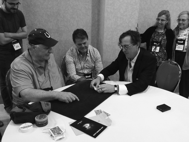 SHORTCHANGED --For good reason, the planet is unhappy with us, hence an excess of earth, fire, flood, and wind. From Houston to Florida and Puerto Rico, especially, the hurricanes have sucked. To avoid driving through the swath of Hurricane Nate, Maleficent and I departed the recent Genii convention a day early, thereby missing the last day: the close-up show, lectures by Jim Steinmeyer and David Ben, one-man shows by Peter Samelson, Jean Merlin, and "Dai Vernon," and a gala that closed with Guy Hollingworth's new manipulation act. Damn. ![]() The Genii is back in the house. My disappointment in missing the final day was intensified by how much I enjoyed the first three. Stuff that made this my favorite 3/4 convention of the year follows: LECTURES. Highlights from the Steve Valentine lecture included multiple ending ideas for the Card Stab in Paper Bag and an endless silk production from a metal steampunk gizmo called a Wonder Box. It was like Hartz's Devil of a Hat routine applied to a silk production. John Bannon (with noted Marlophile Jimmy Nuzzo as one of his volunteers) taught such personal favs as Proxy Shock, Origami Poker, and Stealth Aces. Curtis Kam explored endings in magic routines (and had a really funny bit with a thimble routine). Mike Caveney recounted his purchase and curatorship of his Egyptian Hall museum. When he and George Daily were asked to bid on the entire contents, Mike complained that they hadn't even seen a room full of file cabinets. The owner's response: "You'll like the file cabinets." Jim Steinmeyer taught tricks that too many of us had overlooked in Genii. Pit Hartling, very funny as "best German close-up magician in his weight class," taught an impossible location based on Jordan's study of chains in card shuffles. Jean Merlin showed us fascinating new material with ropes, and Bernard Bilis, also of France, some of his excellent card tricks. Michael Weber conducted a late-night lecture on marked cards (deck included) that I missed, but I did catch his $100 extra-pay event (numerous props included). He impressed me with: A dollar that morphs to a hundred in your fingers, a la a roller printer. A Tenyo-like zig-zag prop with ear buds. A math-based skit with three couples in which the "random" rearrangement allows each to turn around and kiss the person behind them. A trick with a box of candy left about, like an impromptu trick from The Jerx. A nifty ten-card poker routine (too new for Ten). The sock trick from Life Savers. A version of OOTW in which the dealt cards never cross an invisible line. And a memory stunt in which a six-digit number on the back of an envelope encodes its contents. (Note: you can do this without a memorized deck if you use Lewis Jones's Memory Deck, from Seventh Heaven.) All fun stuff. INTERVIEWS. There were two, and each was special. A star-struck Richard Kaufman (he had caught the touring show in Louisville) interviewed David Blaine for 90 minutes. Richard likened David's appeal to that of Houdini, and it was fun to hear David reveal the thinking behind it. Part of David's motivation toward genuine physical stunts was that traditional magic tricks can be explained on YouTube. Fun facts: David gets along with the frogs that he swallows, and he used the same two frogs throughout the 40-city tour. And he is cutting back on life-threatening tricks as he now has a daughter to consider. David closed the interview with a performance piece, beginning by having his lips sewn shut. Three seats away from me, Jade was moaning, "Oh, my god." Eventually a selected card is found folded inside his mouth. This ups the ante on the question of why lose a card only to find it (or sew your lips shut only to cut them open). ![]() The interviews were inspiring. The second was a 60-minute interview with Paul Harris by Michael Weber. Paul is one of the true originals in magic, and he touched on his influence from Harry Eng, his vagabond life style (I couldn't help thinking that Eugene Burger chose a similarly spartan, focussed style, though he never lived in a tepee), and the recent idea of performing one miracle. It particularly impressed me that numerous famous magicians brought books for him to sign and wanted to pose for photos with him. My own feelings toward Paul reach way back, to when he was young and I was sort of young, in San Diego, when we both received life tips from the wonderful Mary Martinez. For the record, my three favorite Paul Harris effects are Nightshades (the original mechanical version), Las Vegas Leaper (the risque version), and Deep Astonishment (Paul's four-letter word prediction that has made people think I am in league with the devil). ![]() Not-so-retired genius. TWO-MAN (AND MORE) SHOWS -- Tag team magic is a kick and was especially so with France's Jean-Jacques Sanvert and Bernard Bilis. The two performed highly original card magic, first individually and then together. The closer was a Malini-like card stab routine in which JJ stabbed a knife through Bernard's hand, Bernard then sawed his own hand off with a buzz saw, and the severed hand was then lifted to show the selected card impaled on the other side. Giving youth its due, Robert Ramirez and Naathan Phan performed a series of comedy magic vignettes titled Variations on a Theme, my notes highlighting a routine in which the boys simultaneously swallowed a long balloon a la the spaghetti scene in Lady and the Tramp, as someone nearby said, "Wrong on so many levels." Although I caught only one of the two gala shows, I certainly enjoyed the one I did, with Guy Hollingworth as emcee and performing his Reformation and Twisting the Aces. Guy handed us Brett Loudermilk with crowd cringing sword swallowing (plus phallic gags), John Carney in a memorable acting and magic turn as L'Homme Masque, and Shintaro Fujiyama with traditional Japanese stage magic and a crowd pleasing Ten Ichi thumb tie. The evening closed with John Gaughan presenting his chess-playing automaton The Turk