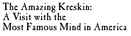 This pool table is ideal for performing "Fields' Zodiac Card Miracle." On October 3-4, The Amazing Kreskin appeared here in Indiana for two concerts of his unique brand of mentalism. We were fortunate to be able to contact the amazing one despite his tight and very busy schedule, to wit we offer the following: