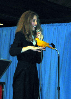 HAIL TO THE CHIEF -- The University of Illinois at Urbana-Champaign is home to Chief Illiniwek, the school's beloved mythical symbol of courage and pride, and now its outlawed symbol thanks to the misguided thugs who run the NCAA. Nonetheless, the Chief's magic persists and always will, and I assume he was watching over us as Champaign's Ring 236 hosted the 30th Central Illinois Magic Get-Together on April 21. Champaign is also home to current SAM prez Andy Dallas, who runs a fine magic/Halloween shop there, and who performed admirably on the evening stage show (some "politicians" do have chops). This get-together is a small one-day affair that rotates yearly between Champaign, Springfield, and Peoria. The big highlight of the convention for me was Chicago's Jeff Bibik, who did his hilarious standup act during his morning lecture and his hilarious closeup act early in the afternoon, all before departing to Iowa to do a hypnotic show at a post prom. Busy fellow! The other big draw for the convention was all three Reed sisters from Ohio. Jessica, the oldest and a Miami of Ohio student, presented a morning lecture on stagecraft (plenty of stuff I didn't know about, such as makeup and how to color live doves safely), and all three performed on the evening show, which opened with Mandy, who just turned 13. Jessica followed with colorful doves, a parrot with a really loud voice, and a midair production of a bunny. Shayna, in her last year of high school, closed the show with her World Magic Seminar first-place Elvis act, and, despite its whizbang ending, the bit I love most is a moment in her interlocked card production in which she shows her hands cleanly empty, and then continues. This nailed me in Las Vegas and nailed me again in Champaign when I was watching for it. Oh yeah, Shayna also performed on the closeup show. I am more than familiar with two of the four card tricks she presented, and I know there are ways she could get more out of them, but just as I was thinking "I could be generous and teach this kid something," she asked if we would like to see one more. We did, a card was selected and replaced, and with no effort whatsoever Shayna executed a flawless one-hand riffle shuffle and a flourishy one-hand cut from which she popped out the correct card. How emasculating! Where were girls like that when I was in high school? The Reed family is very nice, and the girls are all charmers and lookers, and while they may all some day discover Muggle boys and forget about magic, it's been fun watching them make a major early mark on the field. My friend Melinda would be extremely proud of them. All in all, a fun day. Other mentions of note: Ron London did a fine job filling in as emcee, and it is always great to see my friend Maria Schwieter (who usually lurks in the vicinity of Mike Powers).