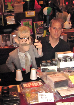DEALS AND STEALS -- Three factors made this the best convention ever: the Guy Hollingworth show, the Tales of Terror, and the best dealer room I've ever perambulated in, noticeable at first for a full-scale Mike Michaels production helicopter suspended overhead. The tradeshow-like experience, unveiled during the opening night "Cover" party, was the brainchild of Brian Daniel of Creative Magic. ![]() Pull one of these out of your top hat! | |