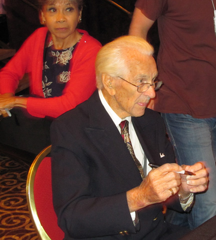 A few favorites: Either Or: A very sneaky no-sleight method of culling four or five cards. Palm Reader Plus: A card is chosen (QH). The four aces then become all AH in sympathy, and then transform into all four queens. Makes great use of Bannon's Discrepancy City Display. Intro-verted: This is the one Josh was demonstrating. It's a four card discovery (either selections or aces, for ex.) featuring Inversion among its elements. Amazingly, it can be done to set up a color changing deck routine. Check it out at johnGmagic.com. ![]() Looking good. Mr. E Takes a Stroll: My favorite of the lot; I've been doing it. A sort of four ace discovery combined with Hamman's Signed Card. Great fun to perform. Behind the Back Triumph: A new plot in that the spec makes random cuts (you don't even know how many) that unscramble a shuffled deck. Almost like real magic. Vino Aces: A parlor/stage version of McDonald's Aces. You'll love the methods and clean handlings of these routines. There is also a handful of interesting essays whose advice I will use, certainly not the usual rehash one finds in some books. This is a lovely book slightly over 6 by 9 inches, 153 pages, strikingly laid out in two colors. I've been studying design lately, and this design is first rate. $50 from Vanishing Inc. Visit the web site for a video introduction and a complete table of contents. RON WILSON TELLS TALES -- One of the favorite books in my library is The Uncanny Scot, by Richard Kaufman, featuring the remarkable magic of Ron Wilson. I had the good fortune to hang about the Magic Castle when Ron was in his prime, and I enjoyed his close-up and his stand-up acts many times. New to the streets is Tales from the Uncanny Scot, by Ron himself. In its 196 pages are hundreds of photos and dozens of reminiscences of Ron's friends, everyone from Cary Grant to Bobby Fisher, with plenty of magicians and movie stars in the mix. It's a marvelous informal history of the (first) golden age of the Magic Castle. Also included, equally delightful, is a DVD containing interviews with Ron by Nick Lewin and R. Paul Wilson (Paul also performs and teaches The Highland Hop) along with Ron's complete Magic Castle stage act. Hardback, nicely produced with Steve Mitchell, a steal at $45 directly from uncannyscot.com. ![]() Ron Wilson looks back. | |
