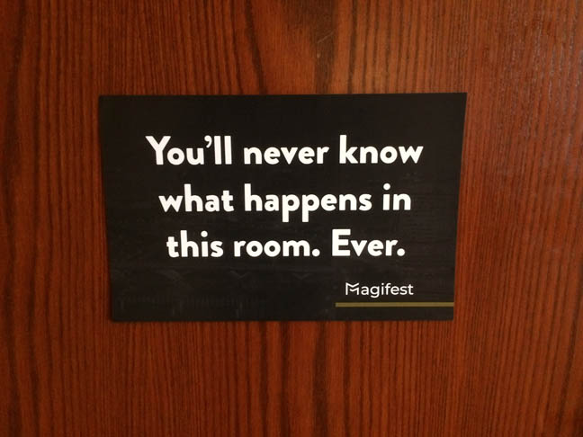 1001 TRICKSTERS -- If you count 930 registrants (about 200 more than could fit into the gala show), add in staff and dealers, and throw in a few lobby cheats, you tally over 1000, the largest Magi-fest on record and a tribute to the draw that Josh Jay and Andi Gladwin have established. Sessioning performance space was at a premium as hordes of look-alike young magicians with beards congregated at the lobby tables, fidgeting with Sybil-like cardistry moves as they awaited to mystify or be mystified. Cards spun in the air, and miracles were in the offing. I must repeat my caveat of Magi-fest 2017: I attend this convention to socialize, not to record, hence my notes below will not mention everyone who contributed, including the big name performers, lecturers, and dealers. If you* were there, you know you were a star, and I hope to see you down the road. ![]() Mystery. That said, let's "award" a few special mentions from my limited perspective. MICROPHONE. Scott Wells joined me in the registration line and interviewed me, for a change. You can listen on Magi-fest Day 1 of themagicwordpodcast.com. BEFORE TV MAGIC CARDS. Way before there was TV, Theodore DeLand was creating magic cards that made magic easy -- and amazing. In addition to the Mystery and Madness Deck that came with the DeLand book reviewed last month, Richard Kaufman shared DeLand's Wonder Deck and DeLand's Automatic Trick Cards, both fascinating marked decks. ![]() Richard Kaufman displays DeLand's Wonder Dec. OPENING GAMBIT. Two years ago Magi-fest opened with the fresh face of Kyle Littleton. This year it kicked off with the mature face of Howard Hamburg. Both excellent choices. Re Howard, I have observed him often but had not seen him lecture. The talk was a nice mix of technique (Why Vernon did the Elmsley at the fingertips in Twisting the Aces, Rising Card, Triumph techniques, Vernon sponge balls patter) and stories (Pranking Larry Jennings, Vernon takes a spill, Card to Castle Toilet Seat). Stuff for the ages. ![]() Howard Hamburg recollects. FRESHEST MAGIC SHOW. Was this originally titled Six and a Half magic Tricks in a Basement? Regardless (I didn't keep count), children's author Adam Rubin is quite the parlor magician, with such material as Silk and Beer productons, Hypnotizing a Rubber Ball, Afghan Bands with red strips of cloth with zippers, and Ring to Box. He drew a nice crowd. David Blaine sat in the row just behind me, and Jamy Ian Swiss just off to my right. BOOK NEWS. At H&R I acquired a copy of Creating Business Magic by David Morey, Eugene Burger, and John McLaughlin; a friend gave me a copy of Richard Himber The Man and His Magic (and a Lucky Ghost Card -- see below); and Richard Kaufman tipped that he will publish an unexpected book this year, one I have been advocating for decades. I'll leave it to Richard to share the title. And Charlie Randall confirmed that the next Nick Trost book is still on schedule, probably for April.(I had already purchased Principia, reviewed below.) There was also talk of new books this year from Mike Powers and Matt Baker. ![]() Andy Greget always attracts a crowd. ![]() Rogues gallery at H&R Magic Books. I was saving this for the Session report, but Andi Gladwin has also produced a really nice edition of The Card magic of E.G. Brown, along with additional annotations. I first saw this at Magic Live, and it's beautiful. The original is in my library and is one of my favorite books. THE GREEN MONSTER. I am jealous. Although I enjoyed some of the past recent years as a children's author, I was never a New York times bestselling children's author. Adam Rubin is, thanks to his Dragons Love Tacos series. I enjoyed his writing lecture for the second time, especially the part about creating Robo-Sauce, a children's picture book that morphs, Mark Setteducati-like, into a robot book. NATIVE TONGUE. Why does English sound so much better from the mouth of a Guy Holingworth? In his lecture, Guy taught a couple of card tricks from Drawing Room Deceptions (after first fooling us with them), then a fabulous concealment for the Cups and Balls. He returned in the Saturday morning Session with Twisting the Aces (or Waving the Aces, if you will) and with The Reformation, his unparalleled torn and restored card. TOO HIP FOR THE ROOM. My favorite magical standup comic is Harrison Greenbaum, and Harrison brought something new to the late-night party this year with a specially written slide show roast of the icons of magic. Woe to David Copperfield, Juan Tamariz, Jeff McBride, and any others who felt the sting of his blade. It was a masterpiece of writing and delivery. Alas, Harrison was also featured on the Saturday night gala to mixed results. The house of magic has many rooms, but some don't want their kids in the room when the language liberally includes what S.J. Perelman called "one of the breezier copulative verbs," hence Harrison rubbed a few the wrong way with his otherwise hysterically funny A material. Josh and Andi have subsequently issued an apology. But as for me, I was laughing so hard, along with the kids and everyone around me, that (as Karrell Fox or Jay Marshall would say) tears ran down my legs. For the record, my second-favorite magical standup comic is Nate Bargatze. Even funnier than his dad! MAESTRO. Juan Tamariz both performed and lectured to huge gatherings. Juan's performance featured a Three-Card Monte with wagers of $100 each and a Cards Across routine with 14 spectators on stage in a sort of Seven Brides for Seven Brothers skit. I wondered if anyone other than Tom Craven and myself were old enough to "get" the music. Juan's lecture concentrated on his Card on Handkerchief routine from The Five Points of Magic. ![]() Juan obliges. SLICKEST DEALER ROOM ITEM. There was much to intrigue this year, my own purchases including Ice Cubes Across (a chink-a-chink with ice cubes) from Anthony Gerard and a Now You See Me-based magic set from Asia. Stuff for the grandkids! But the s
